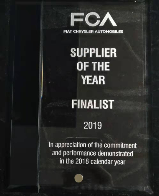Guangdong Hongtu won the Finalist for FCA Supplier of the Year 2018