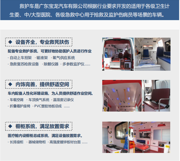 Guangdong Baolong Automobile Co., Ltd. takes full advantage of more than 20 years of modification experience in the automotive industry and actively researches technical problem solutions with relevant partners. In order to solve the problem of whether the new ambulance can be quickly activated in ambulance and epidemic prevention, a new modification is formulated Program.