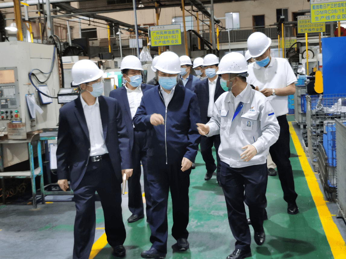 In the afternoon of April 23, Li Cheng, Secretary of CPC Committee and Director of State-owned Assets Supervision and Administration Commission, the People's Government of Guangdong Province (SASAC Guangdong), and others arrived Hongtu Technology Die-casting (Headquarters) to investigate and inspect the enterprise's prevention and control of the epidemic as well as its work resumption situation, and then listened to the report made by Mo Jianzhong, Vice President of Hongtu Technology, regarding the company profile, epidemic prevention & control, work resumption and its future development plan; those who were in the company for this trip included Wang Xiaoyun, Member of CPC Committee and Deputy Director of SASAC Guangdong, Lv Ning, Director of the Office of SASAC Guangdong, Li Xiaoqing, Director of the Office for Development & Planning of SASAC Guangdong, Zhao Jingping, Head of the Division of Party and Masses’ Affairs of SASAC Guangdong, Li Ben, Member of the Standing Committee and Executive Vice Mayor of Zhaoqing City, Zheng Shiguang, Director of SASAC Zhaoqing City, and Li Baiqi, Deputy General Manager of Technology Financial Group and Chairman of the Board of Hongtu Technology.