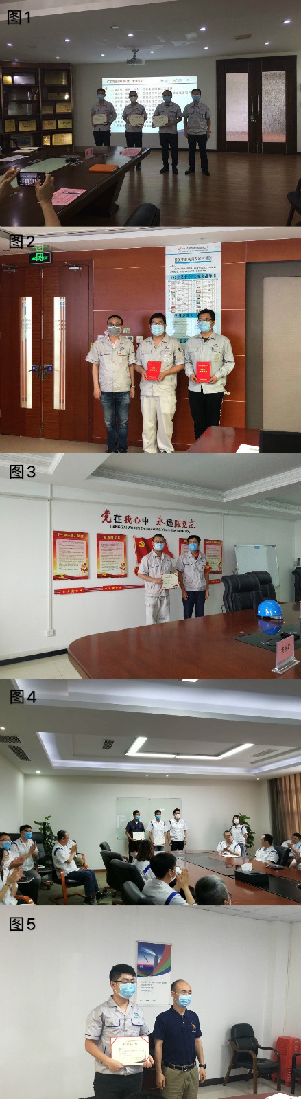 1. Group photo of Mo Jianzhong (first from the right), general manager of Die-casting (Headquarters) with "Top Ten Employees" Wen Wenbin (fourth from the right), Lu Chunjia (third from the right) and Liang Xinghai (second from the right)
