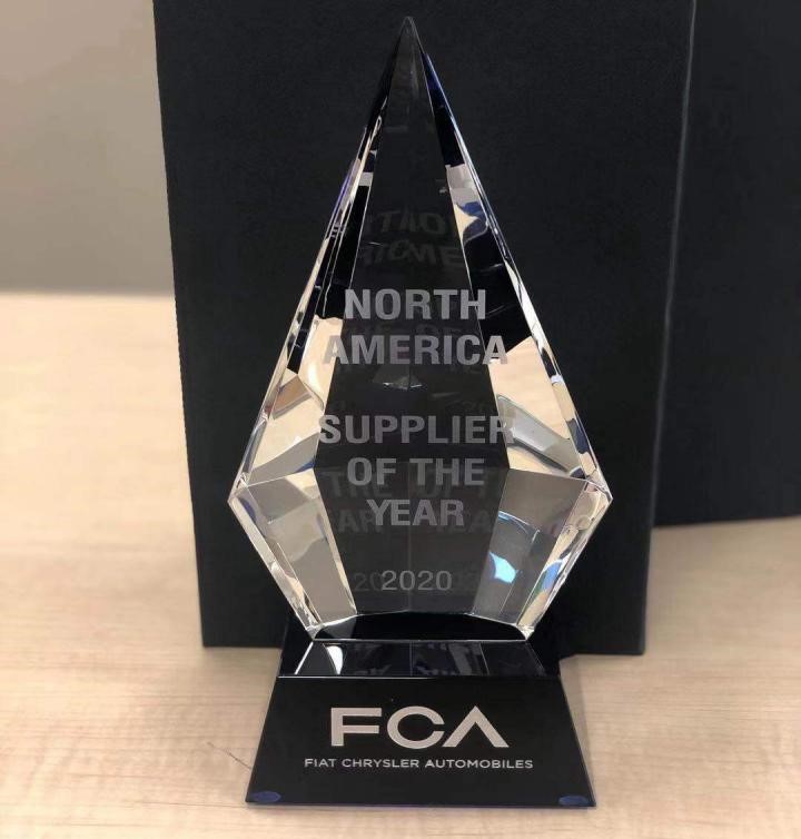 FCA年度優(yōu)秀供應(yīng)商獎(jiǎng)杯(2019年度表現(xiàn)優(yōu)秀、2020年頒獎(jiǎng))