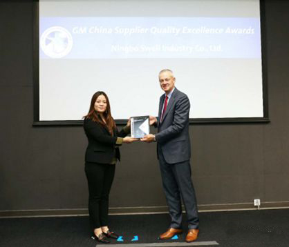 2018年9月18日,通用中國在上海召開了年度供應(yīng)商大會,MK體育科技子公司寧波四維爾作為本年度“通用汽車優(yōu)秀質(zhì)量獎(SupplierQuality Excellence Award)”的供應(yīng)商應(yīng)邀出席了當(dāng)天的會議,MK體育科技子公司寧波四維爾運營副總馬春麗代表公司接受了通用中國的頒獎(頒獎的是通用中國副總裁Peter Layer)。