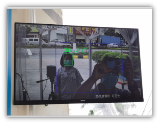 為提高廠區門口的人員通行效率,現已安裝一套口罩配戴和熱成像體溫自動監測儀,既提高了人員的通行效率又提高了檢測的準確性。